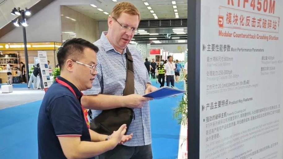 展會(huì)首日,潤(rùn)天智科一亮相就吸引眾多國(guó)內(nèi)外客戶前來(lái)參觀,展臺(tái)前人潮如流,咨詢不斷。本次展會(huì),潤(rùn)天智科以獨(dú)家砂石破碎篩分設(shè)備解決方案閃亮登場(chǎng),更隆重推出全新一代超大型模塊式反擊破碎站——RTF450M!讓我們一同領(lǐng)略其無(wú)限魅力: