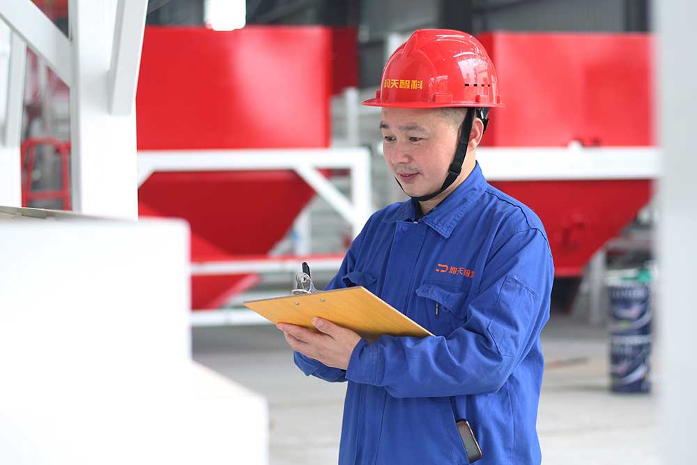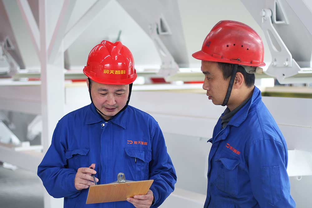 早上八點(diǎn),當(dāng)我們走進(jìn)潤天智科的生產(chǎn)車間,機(jī)器及物料都規(guī)整地?cái)[放在車間各處,從一臺(tái)正在制造的設(shè)備背后,彭總監(jiān)走了出來,他每天都會(huì)提早30分鐘進(jìn)入車間,在各班組開展工作前,了解當(dāng)天車間物料及現(xiàn)場的各種情況。等到開工前的安全生產(chǎn)早會(huì)時(shí),他對(duì)于當(dāng)日的情況早已了然于胸。