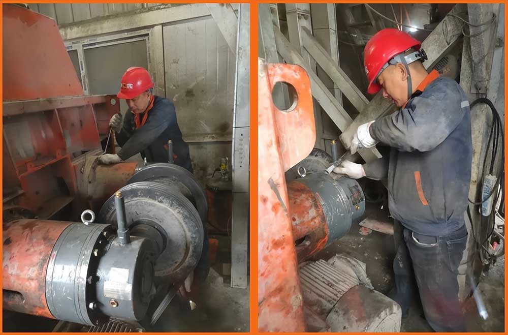 技術服務工程師唐工為客戶的混凝土攪拌站更換軸端密封,并進行減速機保養(yǎng)