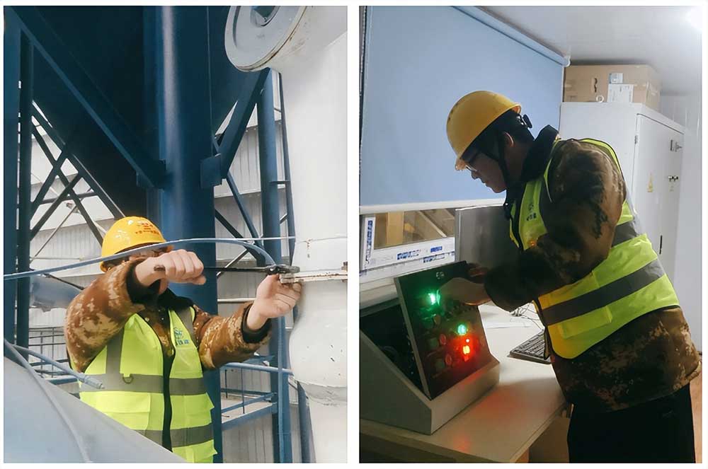 技術服務工程師李工為客戶的混凝土攪拌站進行全面調(diào)試,并向現(xiàn)場工作人員培訓相關技能