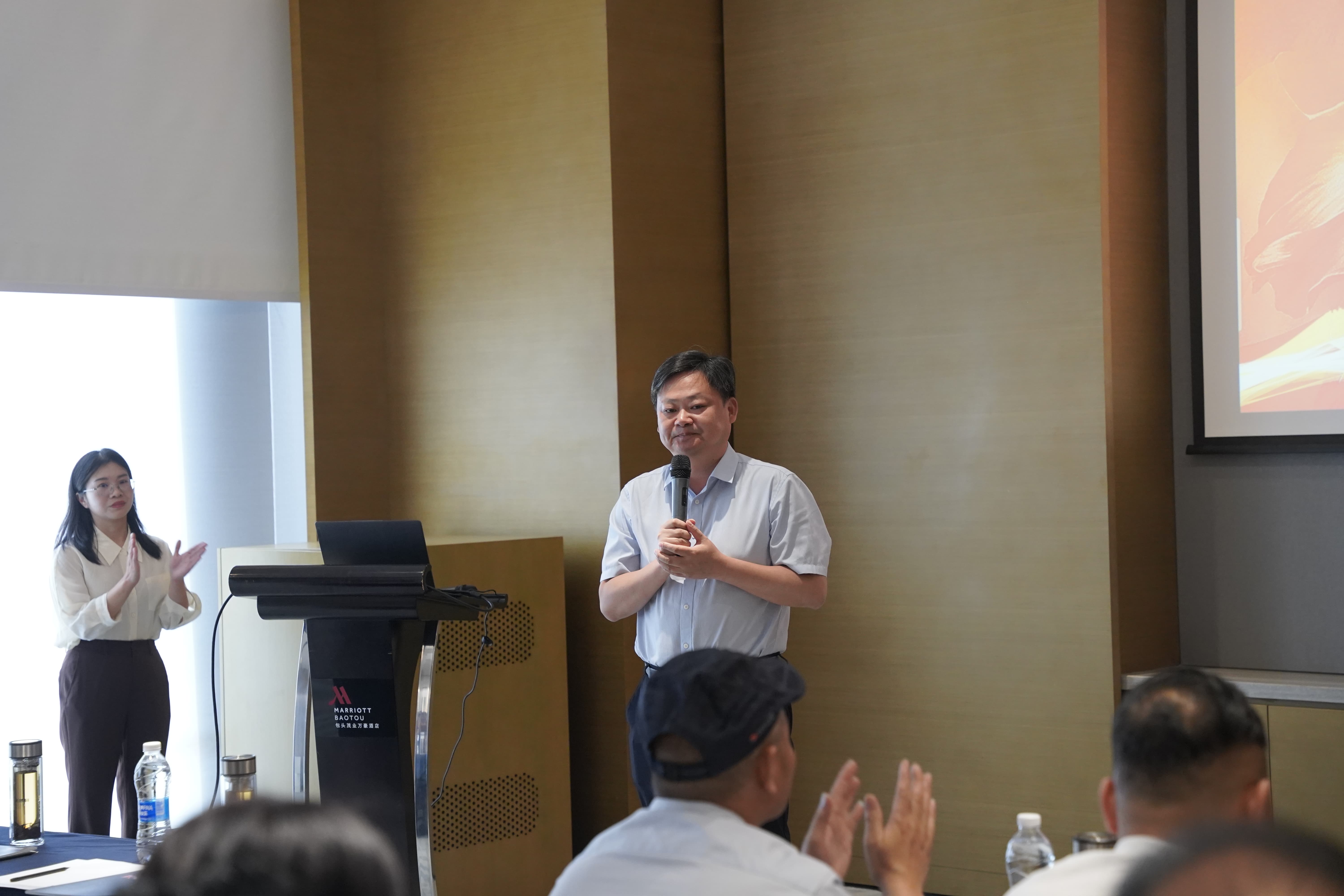 下午14時(shí),舉行再生技術(shù)交流會(huì),潤天智科董事長張?jiān)?、包頭城建集團(tuán)物資供應(yīng)公司總經(jīng)理倪磊領(lǐng)銜出席,廣西龍順匯、貴州路建等50家瀝青施工企業(yè)負(fù)責(zé)人齊聚一堂。