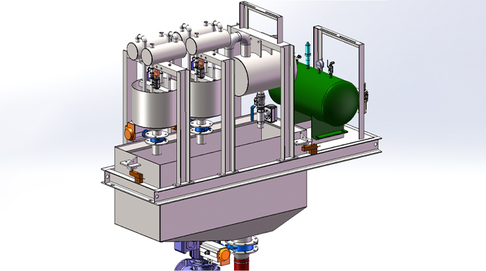 卸料系統(tǒng) 大角度卸料斗,卸料順暢; 內(nèi)置NM400材料耐磨襯板,使用壽命長; 可選配暫存斗,效率更高。 |