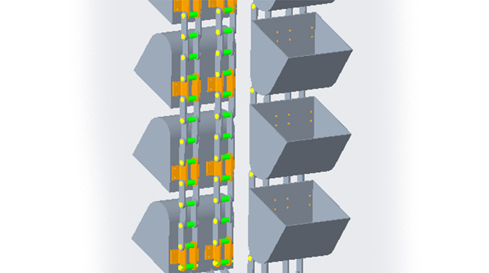 | 提升系統(tǒng) 板鏈式提升機,板鏈不易拉伸,使用穩(wěn)定可靠。 減速電機直聯(lián)驅動,設有防逆轉裝置。 提升機溜道內設有耐磨板結構,提高耐磨性能。 |