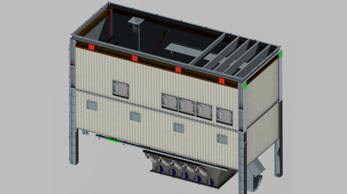 | 熱料倉系統(tǒng) 熱料倉分為上、下倉,采用巖棉保溫。 配有連續(xù)料位檢測裝置,便于直觀觀察各級配料的料位情況。 倉門采用免維護結構設計,大小門二次粗精稱結構,保證骨料計量精度。 砂倉配有溫度檢測裝置。 |